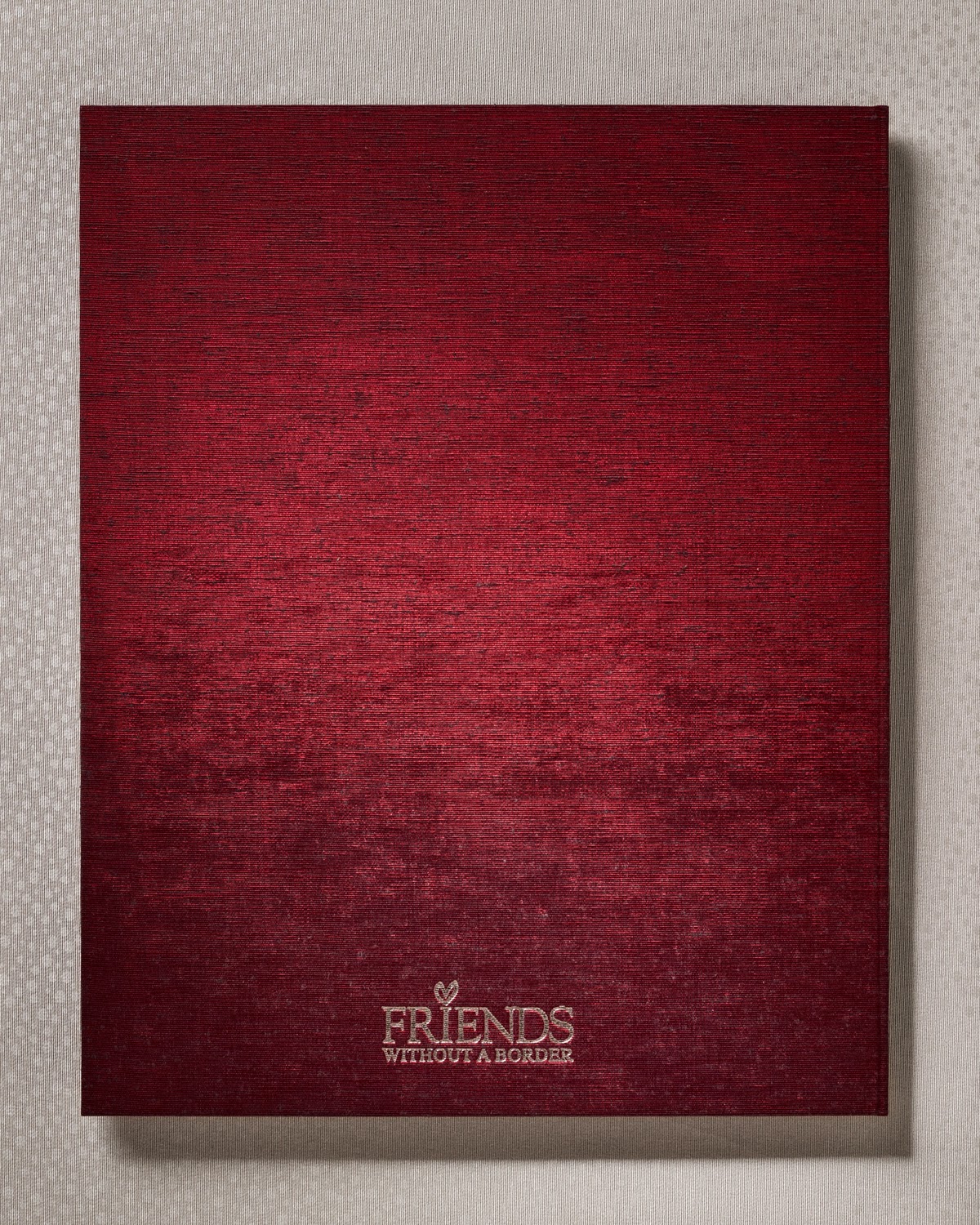 editioned limitation page, printed in letterpress with silver ink, and the back is foil-stamped with the Friends Without A Border logo.