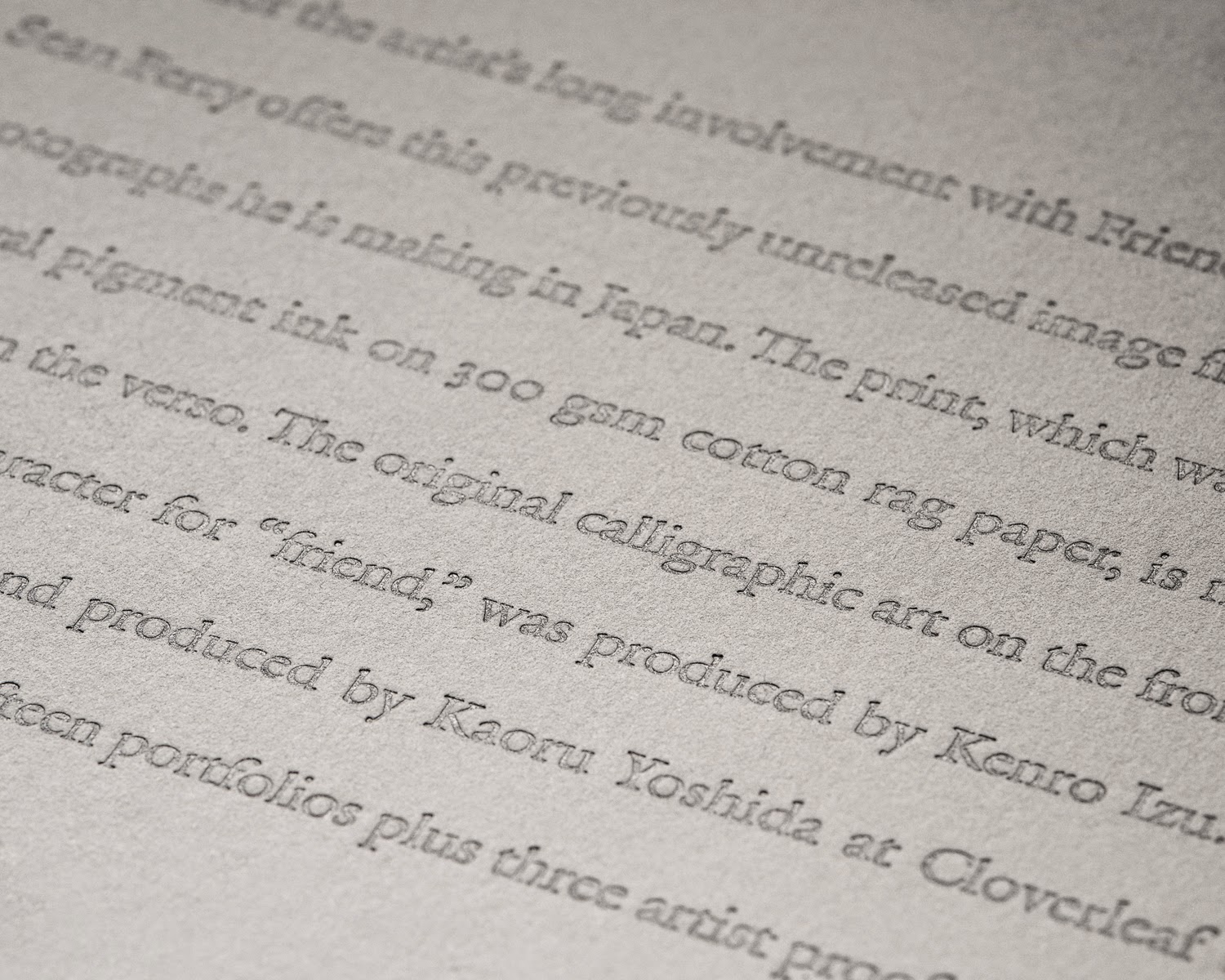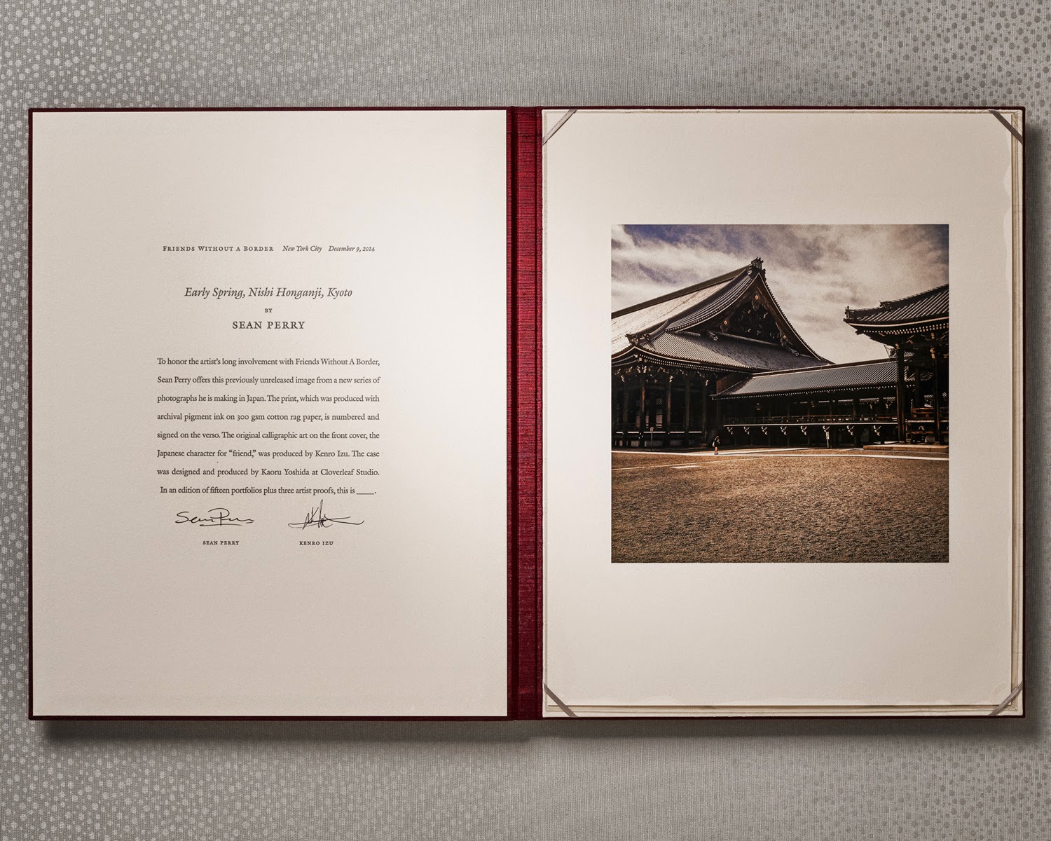 ...presented in a deluxe folio, a collaboration between Sean Perry; book-artists Kaoru Yoshida and Jace Graf of Cloverleaf Studio, Austin, TX; and Friends Without A Border founder, Kenro Izu